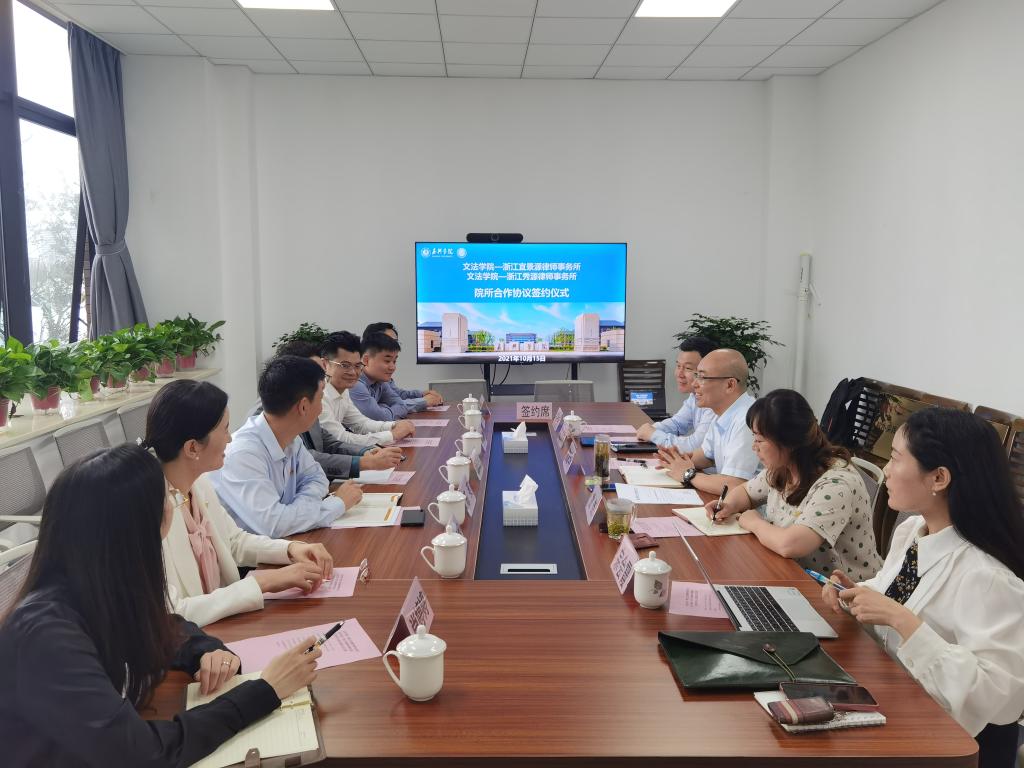 10月15日上午,文法学院与浙江宜景源律师事务所、浙江秀源律师事务所院所合作协议签约仪式在厚德楼268会议室举行。文法学院党委副书记虞岚、副院长屈正林、法学系系主任宗慧霞、副主任唐永梅、浙江宜景源律师事务所主任唐建伟、浙江秀源律师事务所主任陈英和部分律师事务所代表参加了会议。会议由文法学院副院长(主持工作)童建华主持。童建华代表学院致辞,他介绍了学院概况以及与社会、地方合作情况。他希望双方深化合作,紧密对接社会需求,利用这个平台,促进院所合作更上一个台阶。