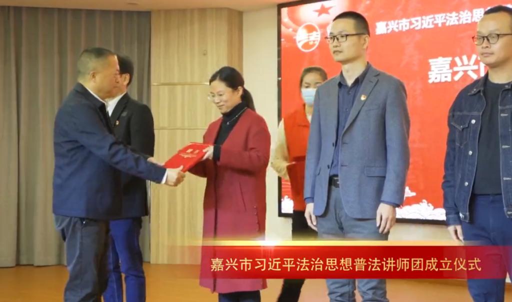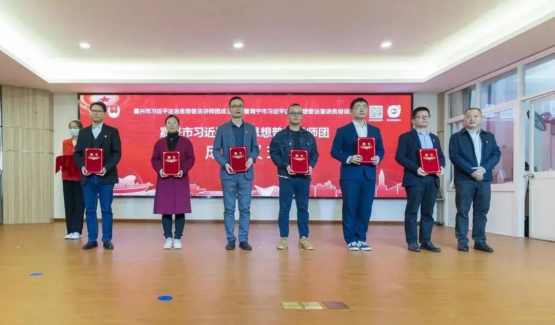 文法学院宗会霞副教授、李滇副教授和杨华国博士受聘为嘉兴市习近平法治思想普法讲师团成员。10月22日上午9点,嘉兴市习近平法治思想普法讲师团成立仪式在海宁市乡村振兴学院举行。习近平法治思想普法讲师团成员代表、第八批“全国民主法治示范村(社区)”代表、海宁市习近平法治思想宣讲团普法宣讲员代表等近100人参加活动。嘉兴市司法局党委书记、局长沈丁华,海宁市委常委汪国锋出席活动并讲话致辞。